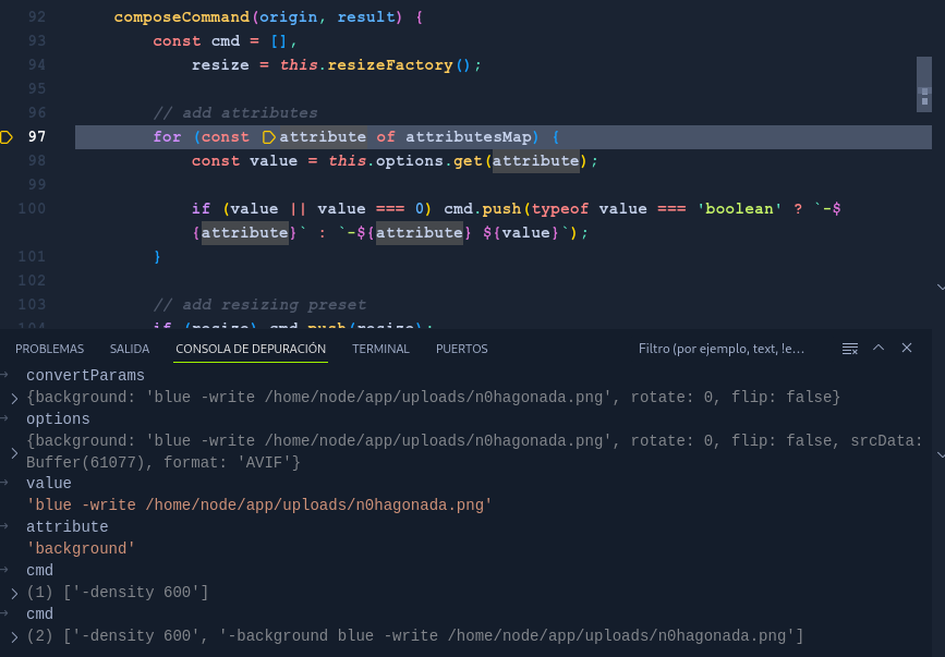 but convert functionality from ImagicMagic had a lot more, the more interesting is -write filename. The real exercise is review the source code from convert.js, our input here is the options array.