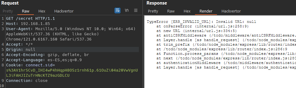 One thing i was not consider is that admin will visit this page after login on this url http://127.0.0.1/login , hi will vist the url we send him with the IP of the challenge http://127.0.0.1:8080/index.php?html=payload. Lets divide the payload in more simple steps , firts check i we can access the /secret endpoint